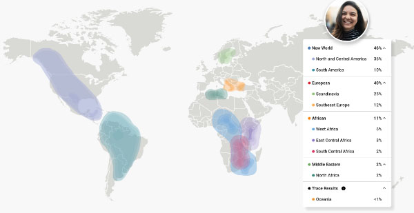 Um dos participantes, por exemplo, descobriu que era quase 7% russo, enquanto outro descobriu que era 5% nativo americano. A Family tree DNA é o único laboratório que nos forneceu resultados tão precisos em termos de percentagens étnicas. Pode confiar neles para descobrir as suas origens na Europa, África, América e até mesmo no Ártico.