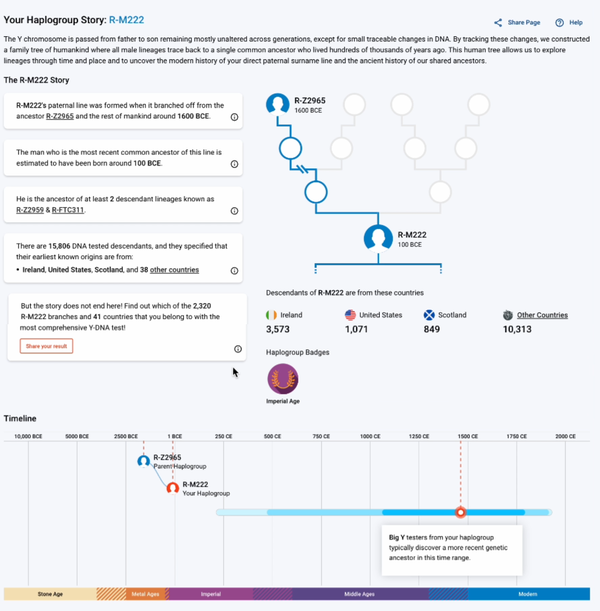 Estamos impressionados com a amplitude e profundidade da análise de Y-DNA e mtDNA oferecida pela FTDNA. Honestamente, nenhum outro laboratório no mercado rastreia as linhagens paterna e materna por mais de 200.000 anos e descobre o significado e as origens dos apelidos de ambas as linhagens.