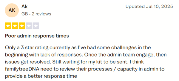 A FTDNA tem uma classificação de 3,3/5 no Trustpilot, com base em 236 avaliações. Mas o que exatamente os utilizadores estão a dizer? Vamos dar uma olhada mais de perto nos comentários deles.