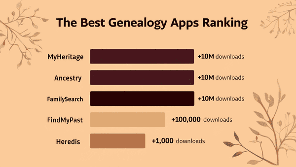 | MyHeritage | Ferramentas avançadas de genealogia | + 10 milhões | Playstore: 4,4/5 com base em 251.000 avaliações App Store: 4,8/5 com base em 860 avaliações |