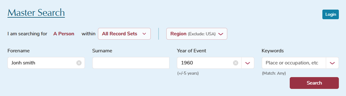 Smart Search é a ferramenta de pesquisa do The Genealogist. Permite-lhe encontrar um antepassado utilizando um endereço, uma palavra-chave (a sua profissão) ou o seu nome e apelido. Também pode localizar antepassados através de mapas históricos georreferenciados.
